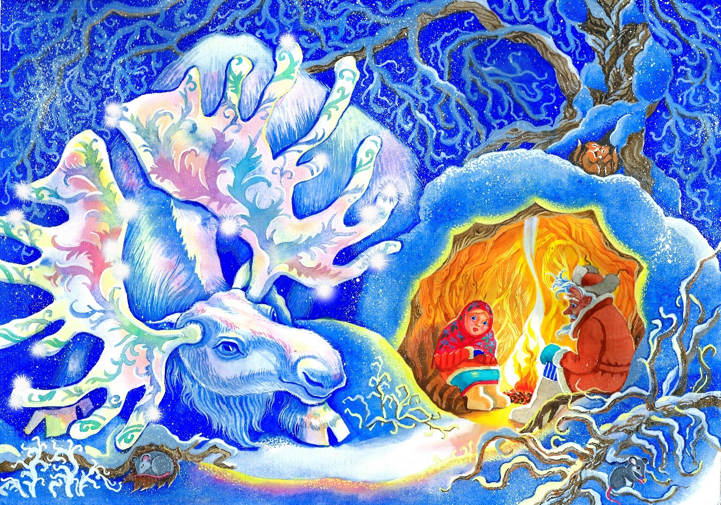 Протёр дедко глаза, взял деревянный скребок и ну снег расчищать! Через малое время уже и двери в дом открыть получилось. Да только бабка деда просмеяла: «Какой еще такой Белый лось! Совсем заврался старой! Почудилось тебе!»