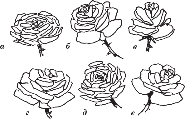 В зависимости от количества лепестков, цветки розы могут различаться по махровости (рис. 4). Они бывают простыми, или немахровыми, когда цветок имеет до 5 лепестков, слабомахровыми, когда количество лепестков составляет 5–10, полумахровыми – количество лепестков от 10 до 20, махровыми, когда у цветка 20–50 лепестков, густомахровыми – количество лепестков больше 50. У сортов с простыми, немахровыми, слабомахровыми и полумахровыми цветками бутоны раскрываются быстро, у махровых и густомахровых сортов распускание более медленное.