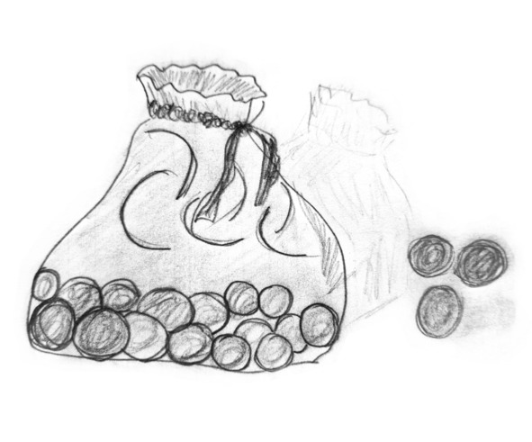 Пока Элеонора разглядывала лоскуток, она поняла, что это не просто золотой лоскуток. В её руках он становился похож на мешочек, в котором стало появляться что-то, что было похоже на золотое прозрачное драже.