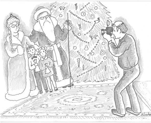 Первую хрущёвку мы «сделали» без особых приключений, правда, устали очень, лифта там не было. На пятом этаже я уже стала очень мрачной Снегурочкой, но никто мне ничего не сказал, может, потому что Сениному папе, Борису Михайловичу, не везде, но наливали, и с каждым визитом он становился всё оптимистичнее. Поэтому на пятом этаже он читал стихи зычным басом, сам себе отвечал тоненьким голосом, спрашивал у детей, хорошо ли себя вели родители и раздавал подарки со смешными комментариями.