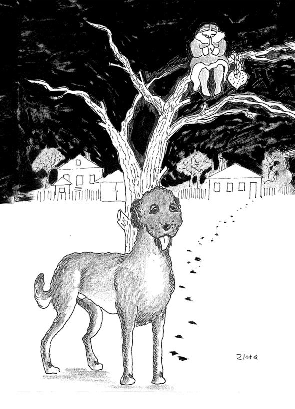 Я сидела на удивление удобно. Широкая мощная ветвь, на которой я устроилась, немного дрогнула под моим роялеподобным весом и всё. Руки мои ещё дрожали от пережитого ужаса, и я никак не могла распутать очки, кокошник и парик с косой. Внизу наконец появился Борис Михайлович, увидел волкодава и забежал обратно.
