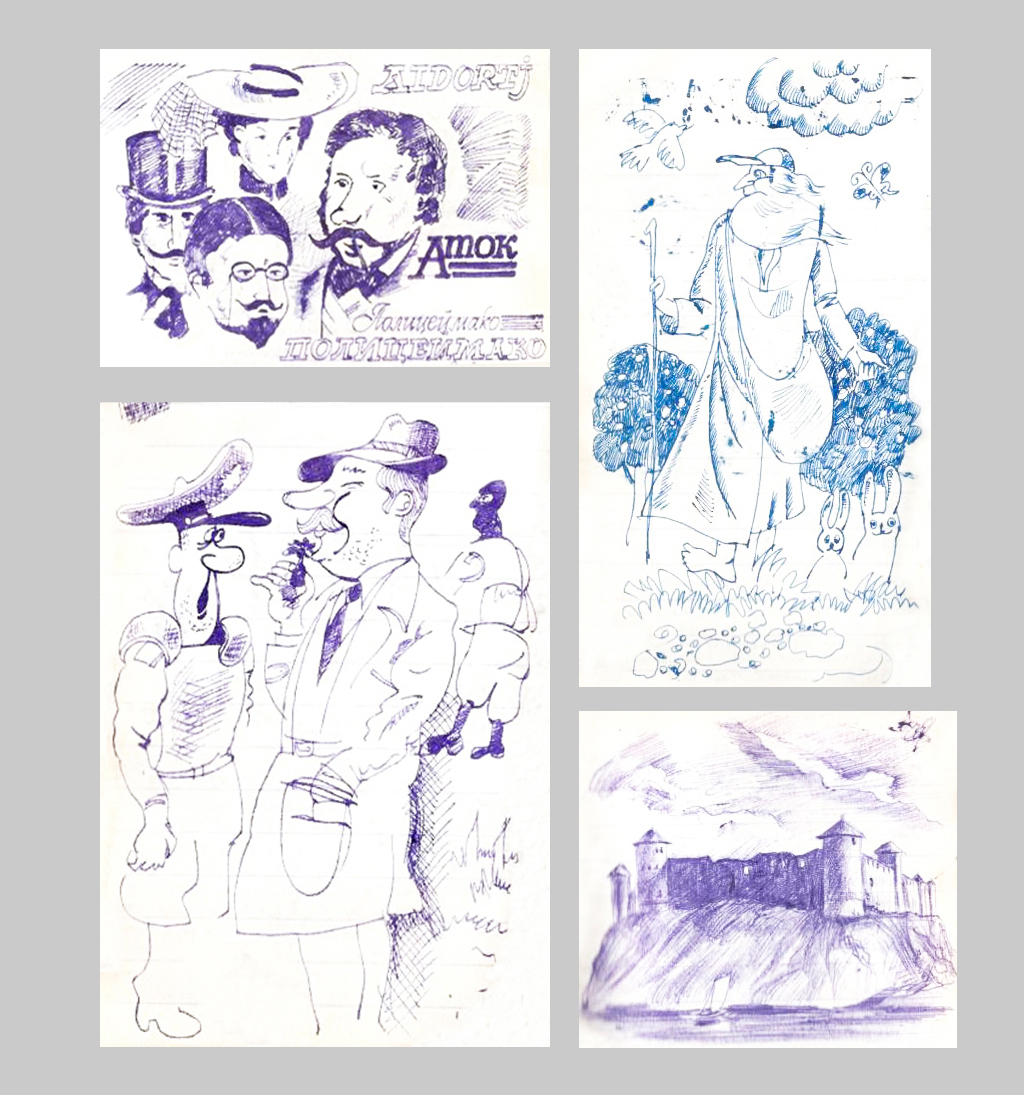 Нам с Александром, моим мужем, он часто присылал письма, которые можно бесконечно читать, удивляясь его открытиям, теплу, юмору и добру. Присылал он их по почте. Великое ей спасибо за счастье иметь бумажные, а не электронные письма! Рисунки сопровождали почти каждое письмо: то это стройная линия, на повороте будто влетающая в изысканный орнамент, то тщательный карандашный портрет маленького тогда ещё сына Никитки, то озорной шарж общего знакомого с точно очерченным профилем…