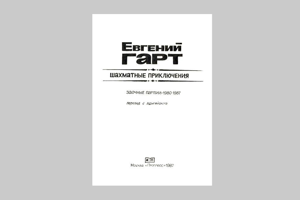 Разряд кандидата в мастера спорта, три медали, грамоты за участие и победы в некоторых турнирах – итог шахматной страсти. А самое неожиданное свидетельство – составленная из сыгранных партий книжка «Шахматные приключения». Написанная якобы Евгением Гартом и переведённая с адыгейского (!) языка, она, как всё, что он делал, талантлива и необычна. Предисловие со словами «Поиск шахматной истины – это призвание не только великих, но и неизвестных широкой публике игроков. Шахматы – это огромное море, из которого пьют и слоны, и животные помельче» Женя написал от имени одного из гроссмейстеров СССР.