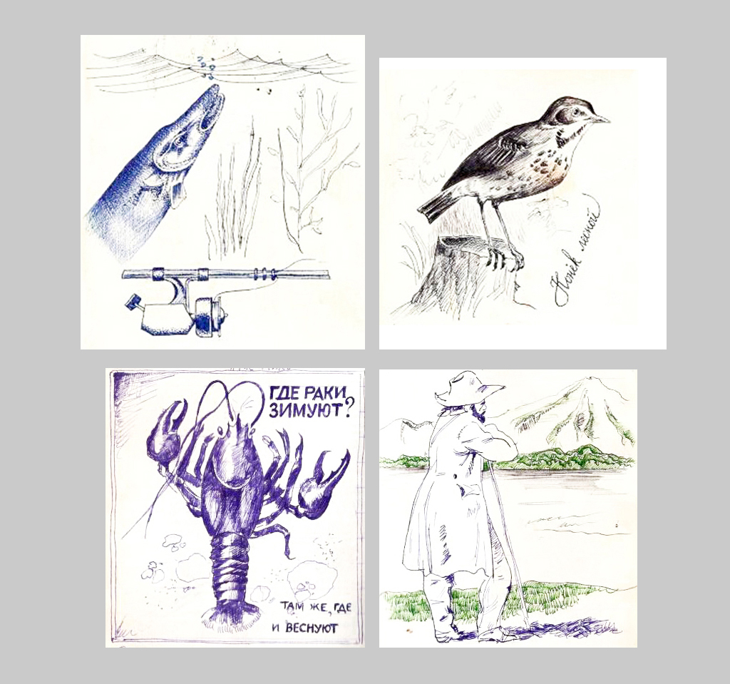 Он вёл дневник рыболова, сформировавшийся в два рукописных тома. В первом – вырезанные из каких-то журналов советы. Например, как угодить карпу. Выписки про окуня, судака, ерша из книги Л. Сабанеева «Жизь и ловля пресноводных рыб». Памятка о том, как правильно оснастить удочку. Подсказки, где удобней держать живцов, какую приманку предпочтительнее использовать при вялом клёве. Но основное содержание – подробные описания каждого выхода на рыбалку. Часто с собственными рисунками – «портретами» рыб, правда, не пойманных, а просто желанных. Щуки, например.