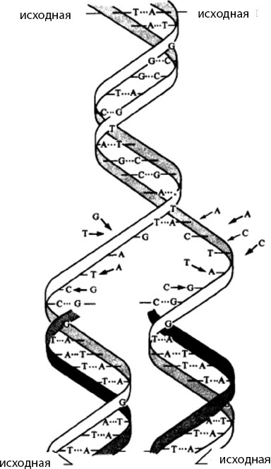 Иными словами, наследственная информация, заключенная в ДНК, передается по наследству благодаря репликации (удвоению) ДНК. Генетическая информация, записанная в виде последовательности нукдеотидов ДНК, в процессе транскрипции переписывается в нуклеотидную последовательность РНК, которая, в свою очередь, определяет последовательность аминокислот соответствующей белковой молекулы.