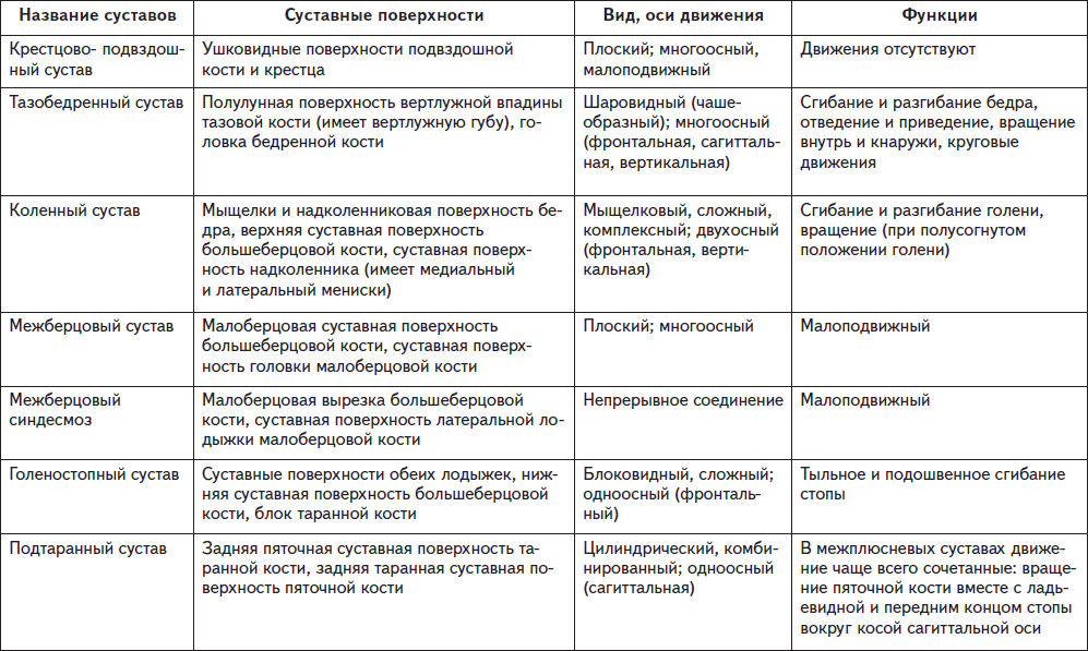 Шаровидный и плоский суставы многоосные. Это плечевой и тазобедренный суставы. Суставы человека представлены в таблицах 7, 8, 9 и на рисунках 41–47.