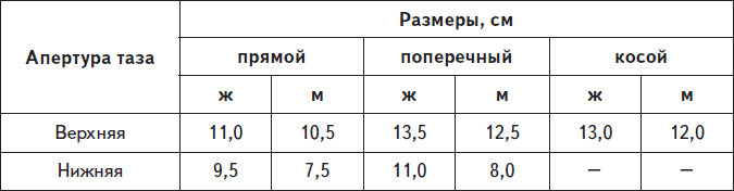 Таблица 10. Размеры малого таза у женщин и мужчин