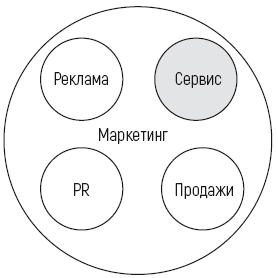 Сначала давайте выясним: маркетинг включает в себя сервис? Или сервис существует отдельно? Как взаимодействуют сервис и реклама? A PR – это про сервис? Где продажи?