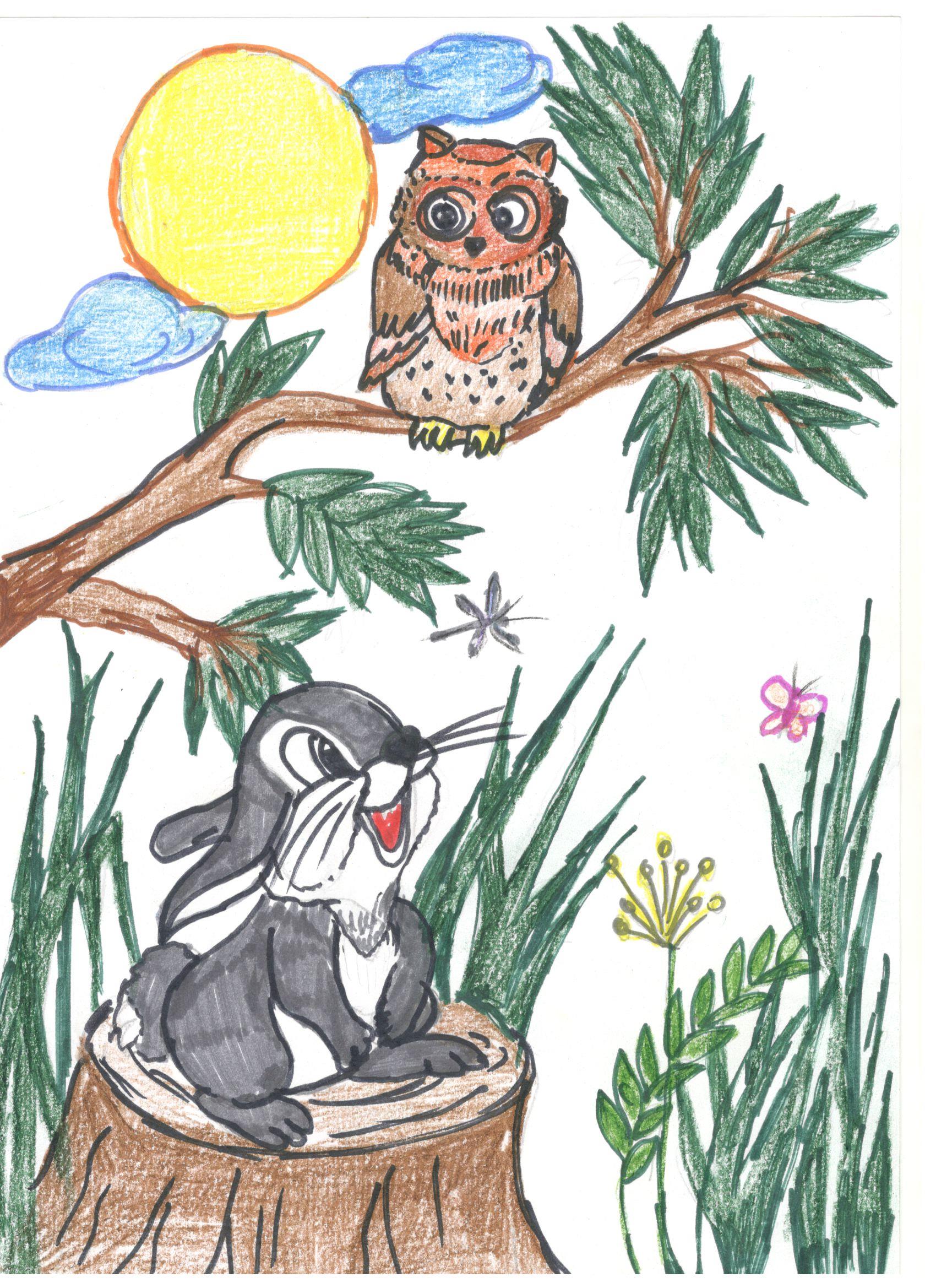 Он отправился в путешествие по лесу, спрашивая всех встречных животных о волшебных словах. Но никто не знал о них. Ушастик уже начал отчаиваться, как вдруг встретил старого мудрого филина и расспросил его об этом. Он сказал зайчонку, что эти волшебные слова – «спасибо» и “пожалуйста”.