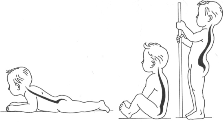 Рис. 2. Формирование изгибов позвоночника в онтогенезе ребенка