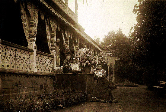 На своем просторном участке в Царицыно он построил три дома – два духэтажных и один, для прислуги, одноэтажный. Главный дом был украшен ажурными резными верандами с двух сторон на обоих этажах и готической башенкой на крыше. С Пасхи и до поздней осени жила в нем обширная семья, насчитывающая более 20 человек. Дружно жила. Им было о чем поговорить, что рассказать и чем поделиться друг с другом. Они любили слушать музыку. А прабабушка использовала каждую свободную минуту для рукоделия – весь дом был украшен ее кружевными или вышитыми салфеточками, модными в те времена. Обучала она рукоделию и своих невесток. Что же касается внуков, неукоснительно действовал принцип: делу время, потехе час. Каникулы – каникулами, но и для обучения музыке, искусству, иностранным языкам время находилось.