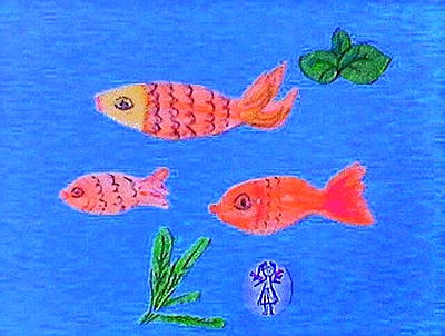 В это время мимо них проплыла маленькая оранжевая рыбка. Она приветливо помахала хвостиком, покружилась и нырнула в глубину.