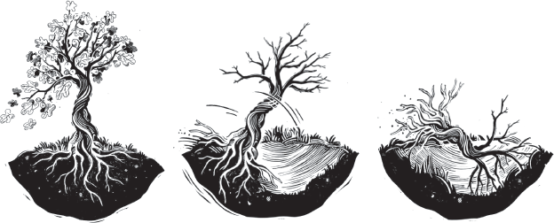 Люди каждый день проходят мимо нас; сидят, спят, курят и устраивают пикники в нашей тени; обрывают листья и пожирают наши фрукты; ломают ветви, которые используют как лошадок в раннем детстве, а став старше и беспощаднее, – для устрашения других; вырезают на наших стволах имена своих ненаглядных и клятвы в вечной любви; плетут ожерелья из наших иголок и запечатлевают наши цветки в произведениях искусства; раскалывают нас на дрова для обогрева жилищ, а иногда срубают нас исключительно потому, что мы заслоняем им вид; делают из нас колыбельки, пробки для винных бутылок, жевательную резинку, мебель в деревенском стиле; извлекают из нас завораживающую музыку; превращают в книги, которыми зачитываются холодными зимними вечерами; используют нашу древесину для изготовления гробов, в которых, зарытые на глубину шесть футов под пологом нашей листвы, находят вечный покой; даже посвящают нам романтические поэмы, где называют связующим звеном между землей и небом, и тем не менее в упор нас не видят.