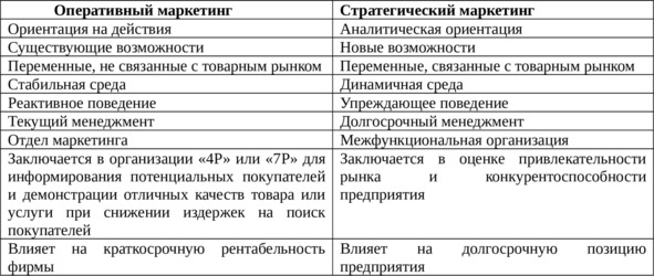 Таблица 1. Сравнение оперативного и стратегического маркетинга
