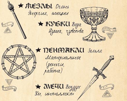 Младшие Арканы воплощают в себе энергию стихий от ее наивысшего воплощения до полного угасания, а также олицетворяют ее в личностном аспекте.