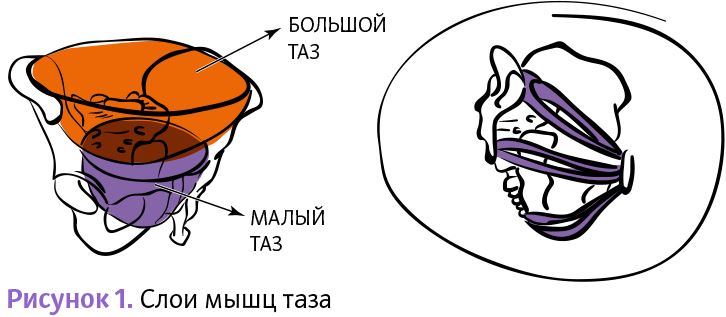 Теперь, когда мы знаем, где находится таз, мы можем определить местоположение тазового дна. На рисунке 1 вы видите большой таз, его полость находится над крестцом, и малый таз – от крестца до копчика.