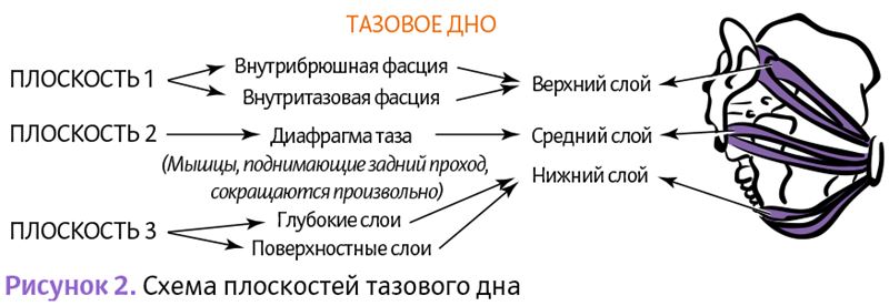 И вот наконец мы обнаружили тазовое дно. Как вы можете видеть, оно включает три плоскости. Посмотрим, что находится в каждой из них и какие функции закреплены за ними.