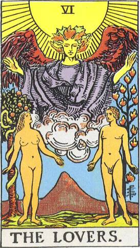 Общее значение: довольно неоднозначная карта, потому что она ассоциируется с неопределенностью как в чувствах, так и в выборе партнера. В ней есть оттенок двузначности (даже если это относительно положительная интерпретация). Часто показывает мучения выбора и сомнения в отношениях. Для свободных предвещает начало новых отношений.