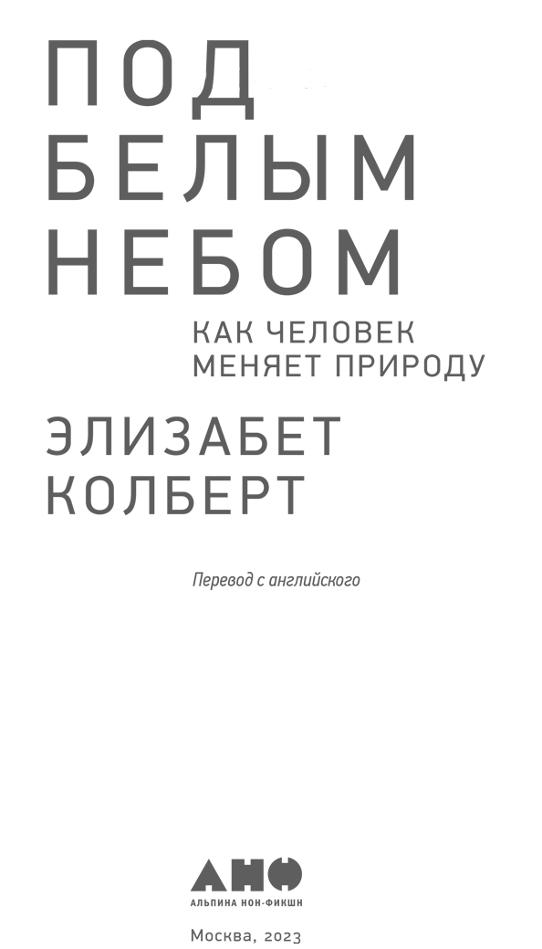 Под белым небом: Как человек меняет природу / Элизабет Колберт; Пер. с англ. – М.: Альпина нон-фикшн, 2023.