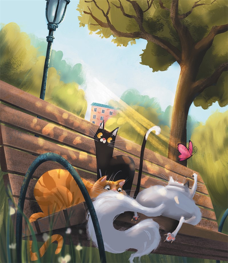 Или вот соседка наша из дома № 1, Эльза Семёновна. Она никого из людей не любит. И можно было бы подумать, что сама она человек нехороший, но, если бы вы увидели, как она с кошками разговаривает, вы бы удивились! Она будто мурлыкать начинает при виде любого дворового кота. Будто знает какой-то тайный кошачий язык. Она со всеми соседями в переулке переругалась, а вот котам разрешает делать всё, что они захотят, – и во дворе, и у себя дома. На мальчишек может запросто крикнуть ни с того ни с сего: «Чего это вы тут расселись?! Это лавочка для пожилых жителей дома!» А если на этой же лавочке коты соберутся, она всех их гладить и обнимать кинется. А они и собираются там, потому что знают, что Эльза Семёновна им колбасы принесёт и молока нальёт. Хорошо, что не около нашего дома эта лавочка, а то бы Эльза начала моего Прошу гонять. Она ведь собак от дома № 1 разогнала. Там все соседи уже поближе к нашей беседке ходят гулять со своими питомцами. Эльза говорит, что собаки могут её котов обидеть. Ага, конечно… Такая банда кошек может любого пса победить!