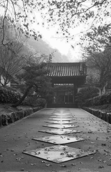 Двухдневное пребывание в одном из древнейших дзэнских монастырей Киото – Мёсиндзи – более всего запомнилось мне теми часами позднего вечера и раннего утра, которые мы провели в медитации в специально предназначенном для этой цели зале дзэндо. Мы сидели в полумраке огромного деревянного строения, с потолка которого за нами, казалось, пристально наблюдал глаз гигантского дракона работы художника XVII столетия Кано Танъю. Сквозь раскрытые двери дзэндо виднелись очертания соседнего здания монастыря: силуэт крыши храма с загнутым вверх карнизом на фоне темно-синего неба чистотой красок и безупречной четкостью линий напоминал классическую японскую гравюру. И только запахи и звуки дождя, ночная влажная прохлада делали эту гравюру живой. Оживляли ее и огромные каменные фонари торо, мерцающие на фоне дождливого неба. Та же картина грациозно изогнутого карниза на фоне глубокой, но уже светлеющей синевы небес и тот же запах дождя ожидали нас ранним утром: для продолжения медитации мы поднялись в половине четвертого утра. Тишину в зале медитации нарушали лишь звуки пробуждающегося монастыря: молитвенное пение монахов и звон колокольчика, доносящиеся из соседнего храма, стук деревянной дощечки, возвещающий о начале медитации, и неожиданный среди всего этого спектра звуков крик петуха…