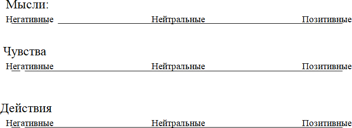 Поставьте отметку в том месте, которое соответствует оттенку ваших Чувств, Мыслей, Действий