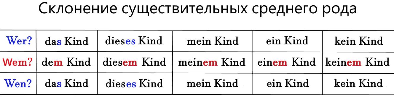 „Wem willst du es schenken?“ – „Dem Nachbarskind.“ – «Кому ты хочешь это подарить?» – «Соседскому ребенку». (das Kind)