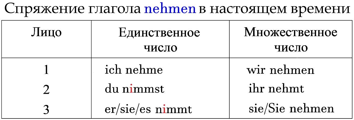 3. “Was ist das?” – „Das ist ein Schlafmittel.” – „Du nimmst Schlaftabletten? Seit wann?” (Глагол nehmen – неправильный. См. таблицу.)
