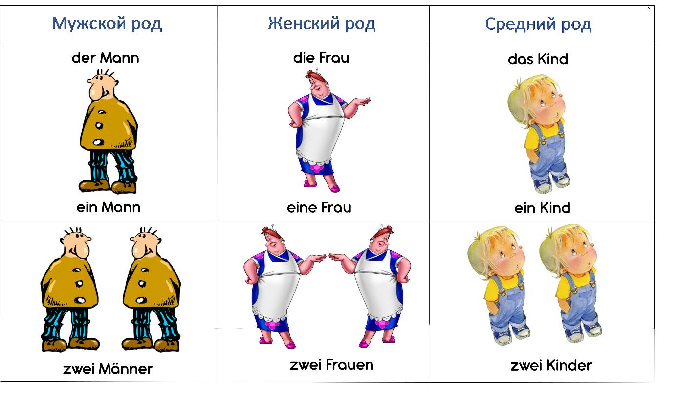 Точно также, род существительного тоже далеко не всегда можно угадать, исходя из его внешнего облика. И что дополнительно усложняет дело, в русском и немецком языке род может не совпадать. Самый наглядный пример: девочка и девушка в немецком языке не женского, а среднего рода: das Mädchen; das Fräulein. И дело тут не в том, что немцы считают девочек и девушек не вполне оформившимися особами женского пола, а в грамматике: все существительные с уменьшительными суффиксами -chen и -lein – среднего рода.