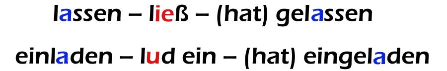 В этом самостоятельном употреблении глагол lassen образует три основные формы так, как было показано к таблице к предыдущему уроку: