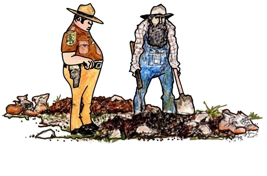 Seeing what happened, the old farmer went over to investigate. He then started to dig a hole and bury the politicians.