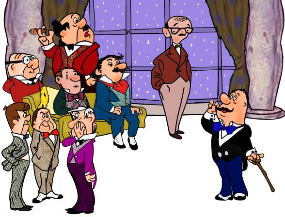 Ключ. 1. “Roberto!” – “Allerdings! Ich bin’s! Ha! Das habt ihr nicht erwartet, mich so bald wiederzusehen, nicht wahr, Turteltäubchen?” 2. “Mein Mann! Versteck dich! Schnell!” – “Allerdings! Ich bin’s! Ha! Das habt ihr nicht erwartet, mich so bald wiederzusehen, nicht wahr, Turteltäubchen?” 3. “John Silver, der Mann mit dem Holzbein!” – “Allerdings! Ich bin’s! Ha! Das habt ihr nicht erwartet, mich so bald wiederzusehen, nicht wahr?” 4. „Leutnant Colombo!“ – „Allerdings! Ich bin’s! Ha! Das haben Sie nicht erwartet, mich so bald wiederzusehen, nicht wahr?” 5. „Herr Oberst!“ – „Allerdings! Ich bin’s! Ha! Das haben Sie nicht erwartet, mich so bald wiederzusehen, nicht wahr?”