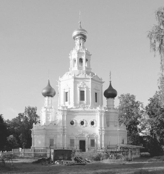 Из-за того, что все дети Лыкова умерли еще в детстве, к концу XVII века Троице-Лыково оказалось в списке дворцовых, то есть государственных, владений и перешло в руки дяди Петра I – стольника Мартемьяна Кирилловича Нарышкина. Примерно в то же время при активном участии его брата Льва Кирилловича зодчим Яковом Бухвостовым в 1698–1703 годах был выстроен храм Живоначальной Троицы. По преданию, камень в его основание в знак уважения к дяде заложил сам Петр I. Нарядный храм из красного кирпича является типичным образцом так называемого «нарышкинского барокко», когда церковь и колокольня-звонница сливаются в одном здании.