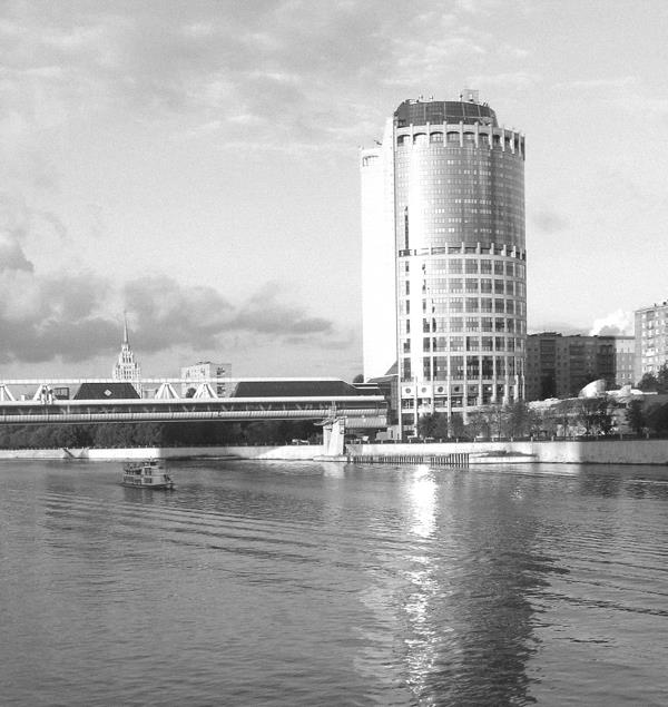 Еще ниже по течению, вслед за «Башней-2000», начинается бывшая промышленная зона. Это территория бывшего пивоваренного завода, а ныне – бизнес-центра «Бадаевский». Лучше всего смотреть на это здание с противоположной набережной – Краснопресненской.