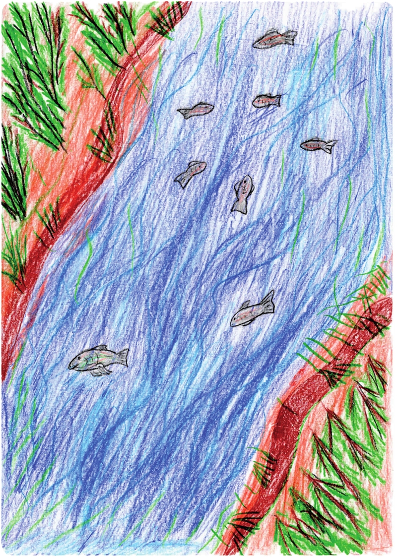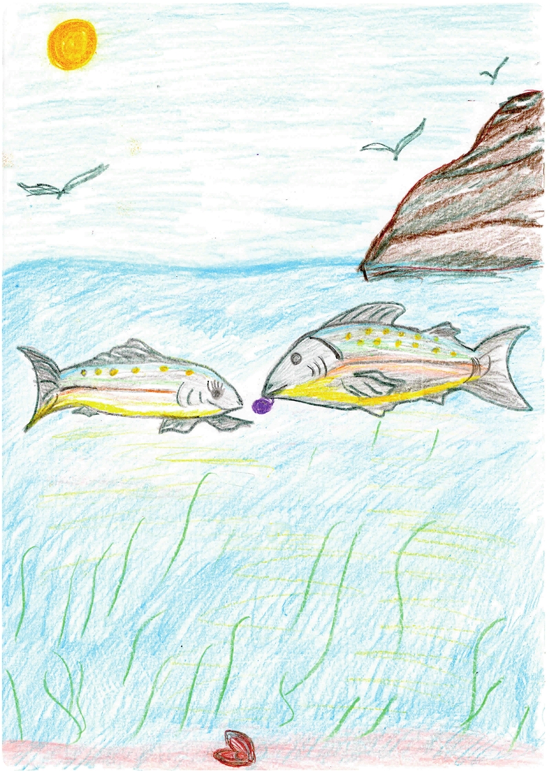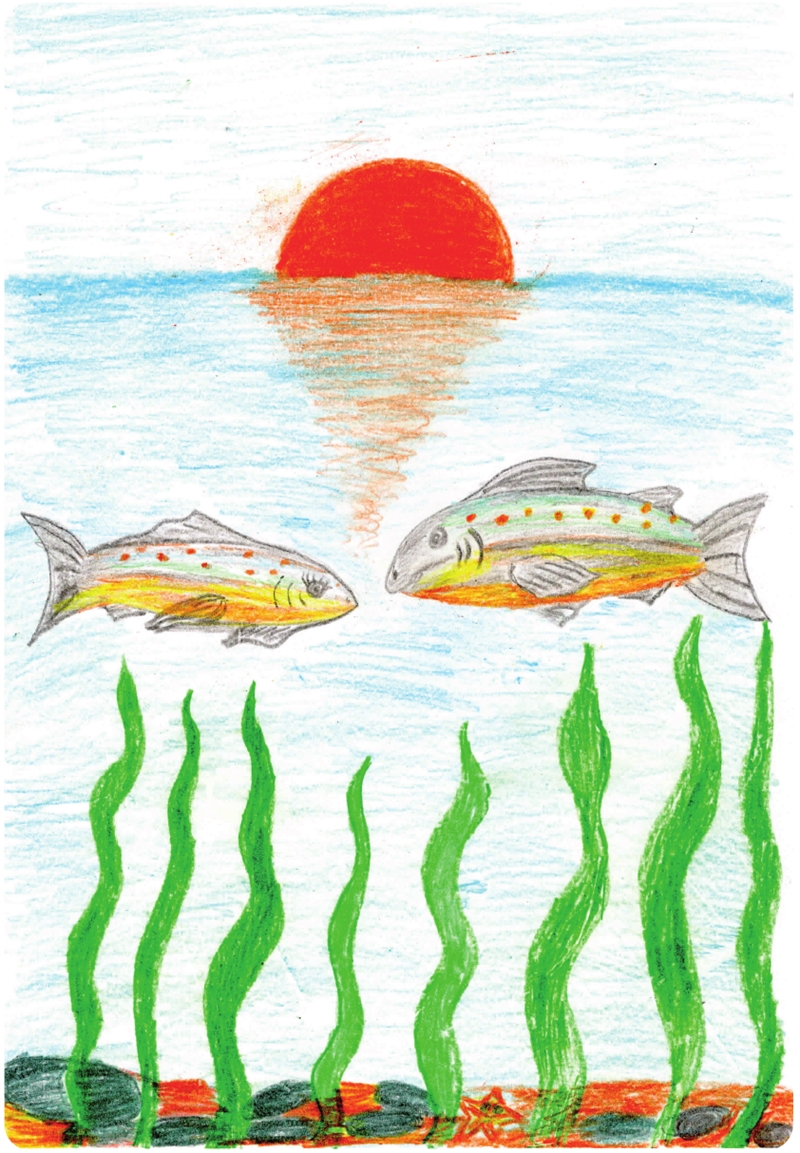 Вот в один прекрасный день мама сёмга приплыла в укромное гнёздышко, которое подготовил папа сёмга, чтоб растить малышей. Она отложила, разметала икру, папа помог уложить икру красиво, и стали они ждать малышей. Ждали, ждали, и вот самым первым вылез из икринки наш герой – малёк Шустрик. Так назвали его родители за быстроту и ловкость. Потом стали появляться другие малыши. Они вместе весело играли в отражении солнечных лучей в воде. Мальков было много, но родители знали своих деток и следили за порядком, пересчитывали их. Малышей было двадцать, все разные по характеру и внешности. А наш герой был самый быстрый.