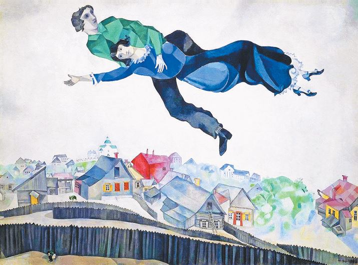 Это одна из величайших работ Марка Шагала, на которой он изобразил себя и свою музу Беллу, счастливо парящих над городом Витебском. Почему же они так счастливы? Дело в том, что им пришлось многое преодолеть, чтобы быть вместе.