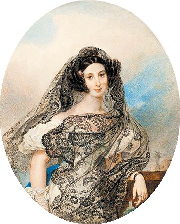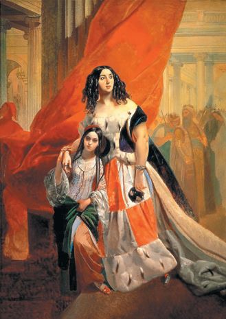 К.П. Брюллов «Портрет графини Самойловой, удаляющейся с бала у персидского посланника (с приемной дочерью Амацилией)», 1842 год, Государственный Русский музей
