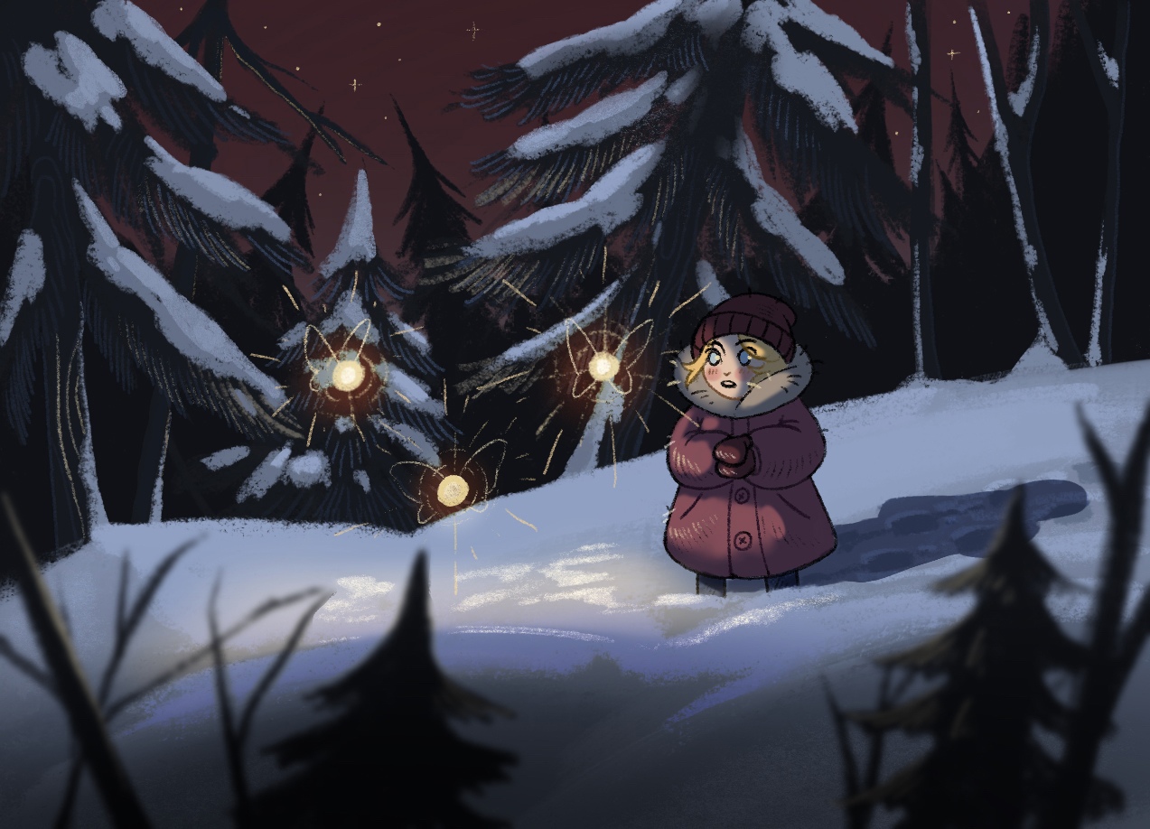 – Ничего себе! – изумилась девочка. – Сейчас же зима. Вам не холодно? Никогда не видела светлячков зимой! И разве светлячки умеют разговаривать?