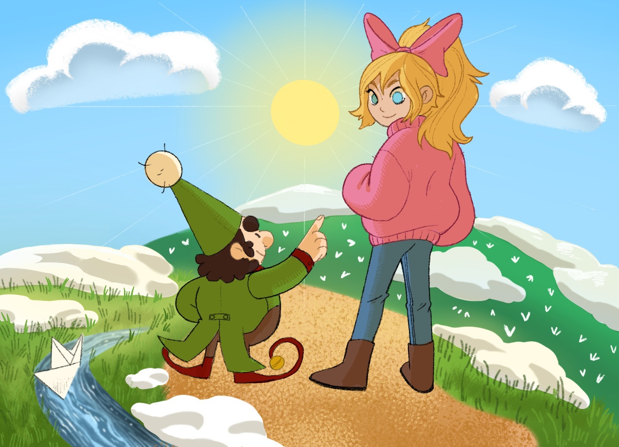 Тропинка поднималась всё выше и выше, словно гном и девочка взбирались на невидимый холм. Сверху открывался необыкновенный вид на большой и красивый город. Только город этот был не простой, а волшебный.