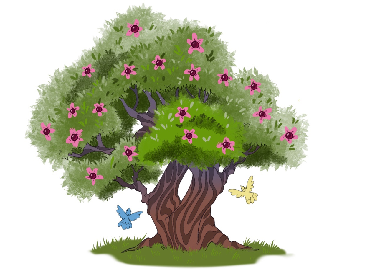 – Фильниусы – это вон те большие деревья, – пояснил Зак. – Когда солнце только-только начинает обогревать землю, на их ветвях появляются бутоны, источающие сладкий аромат. От этого просыпаются кольтыберии, которые живут в кольтыбах, вот в этих маленьких кустиках. Потому их и называют «кольтыберии», от названия кустарника, в котором живут эти птички.