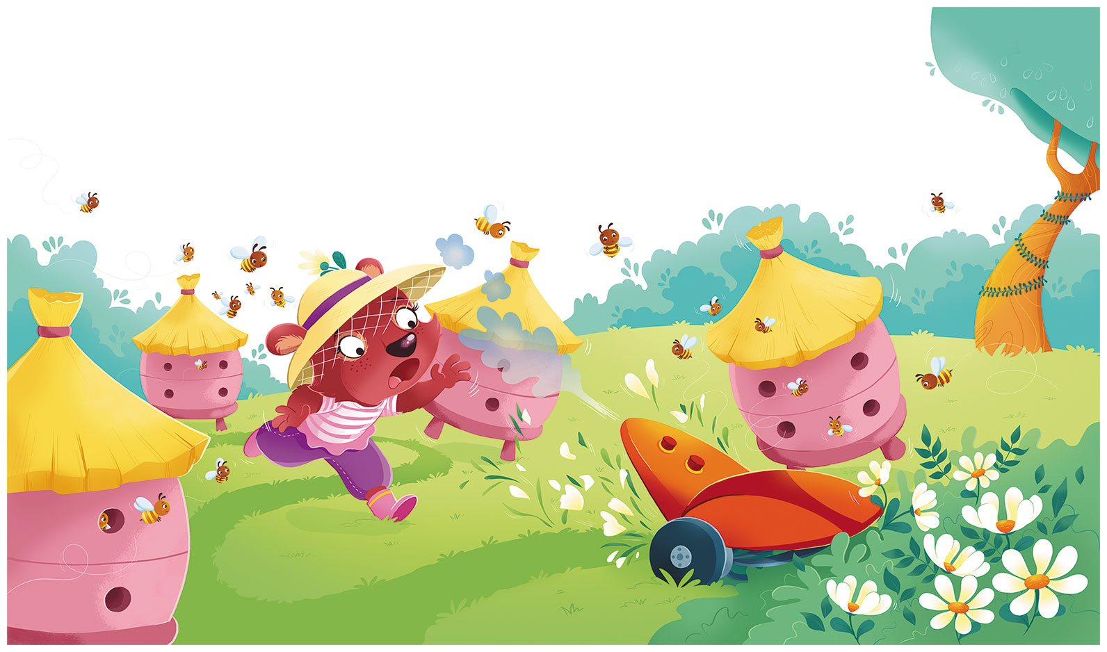 Госпожа Медведица разводит пчёл. За своими пчёлами она заботливо ухаживает, и они дают много вкусного мёда.