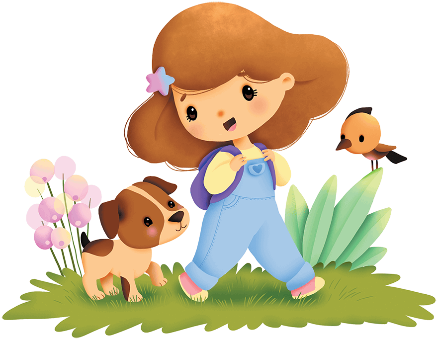 Алиса собирает рюкзак, кладёт туда пачку печенья, зовёт своего пса Тома и выходит в сад. Идя всё время прямо, она перелезает через забор и идёт по полю, окружающему её дом.