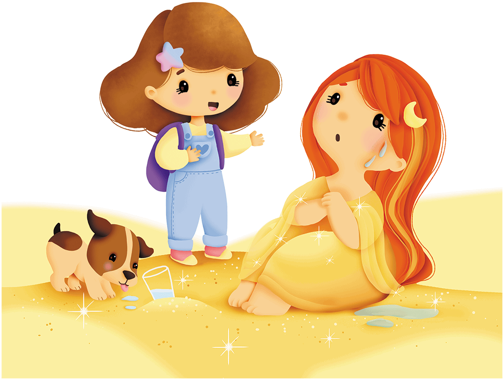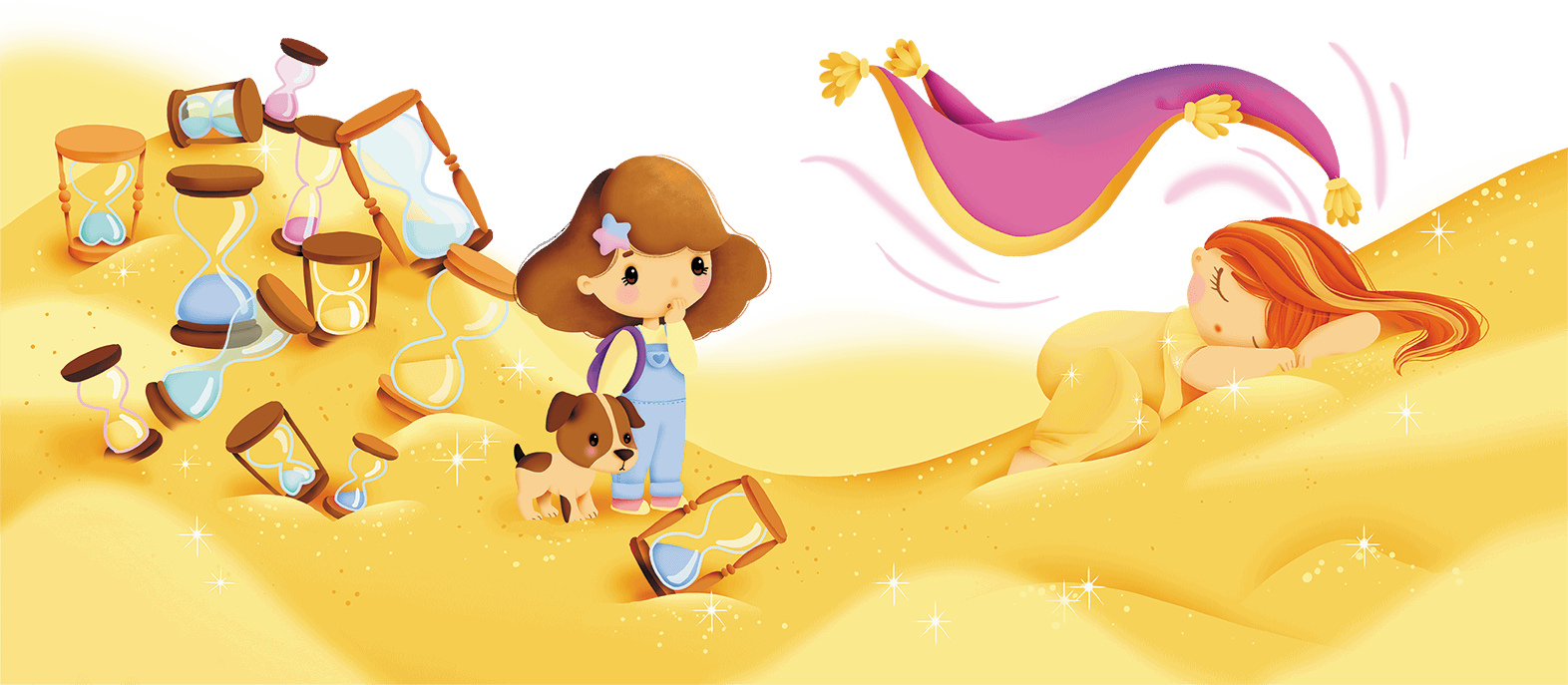 Девочка открывает свою книгу и ищет сказку о владыке песка.