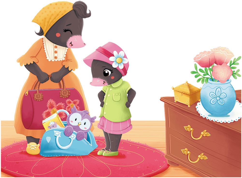 – Мама, я готова! – говорит Кротишка. – Пуховик, одежду и игрушки взяла!