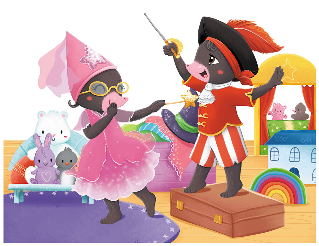 Здесь есть комната с кучей игрушек, кукольный театр и сундук, набитый костюмами.