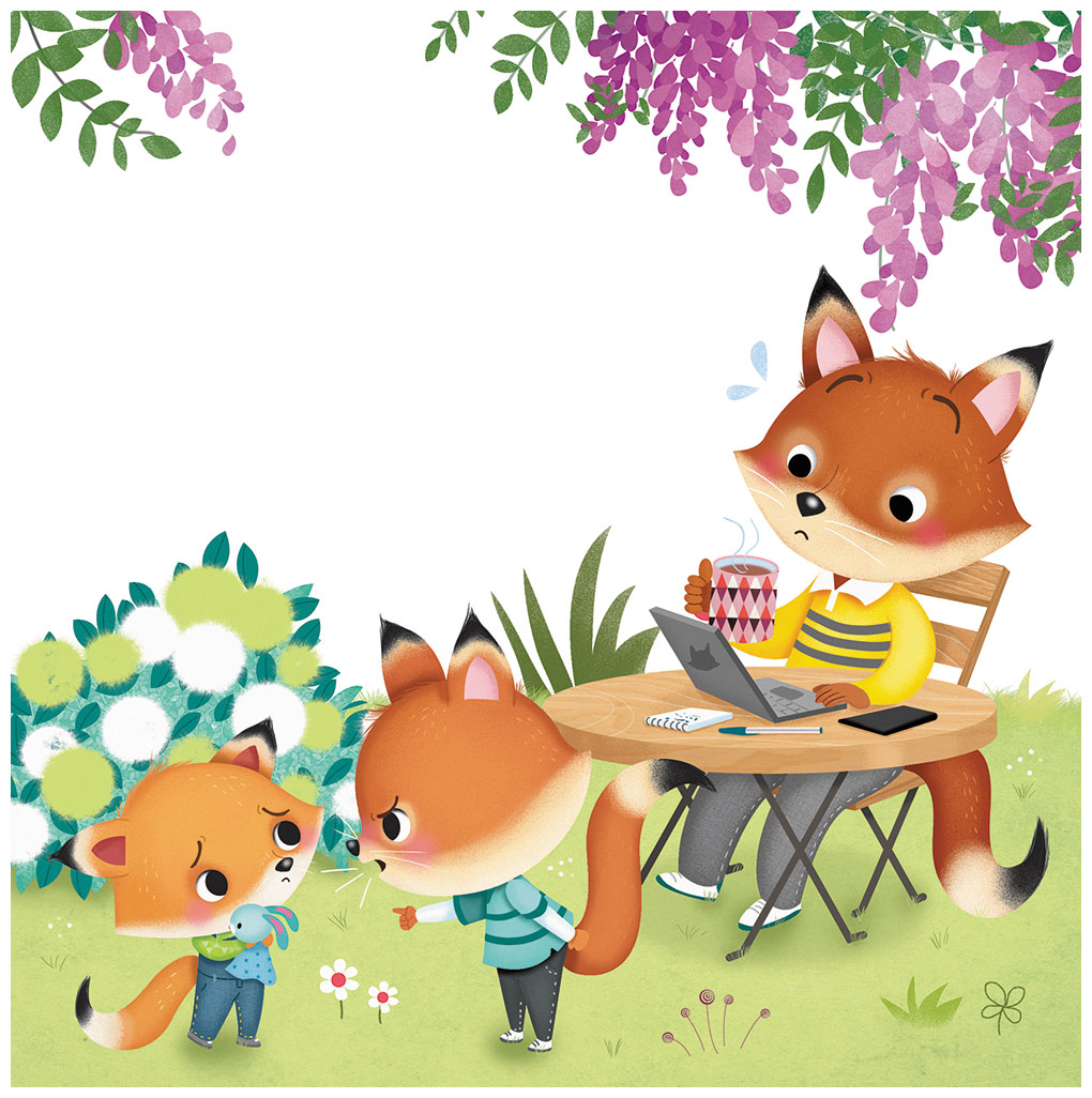 Пока папа спокойно работает под глицинией, Арчибальд и Феликс с криками носятся по саду.