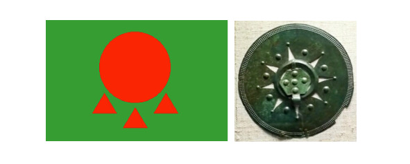Проследить преемственность Мещеры от Рязано-окского народа позволяют археологические находки и, прежде всего, это большая нагрудная бляха. Именно она, с «гусиными лапками», сейчас изображена на флаге Mešerani mastor – Мещерcкой земли, зелёный фон символизирует Мещерский лес.