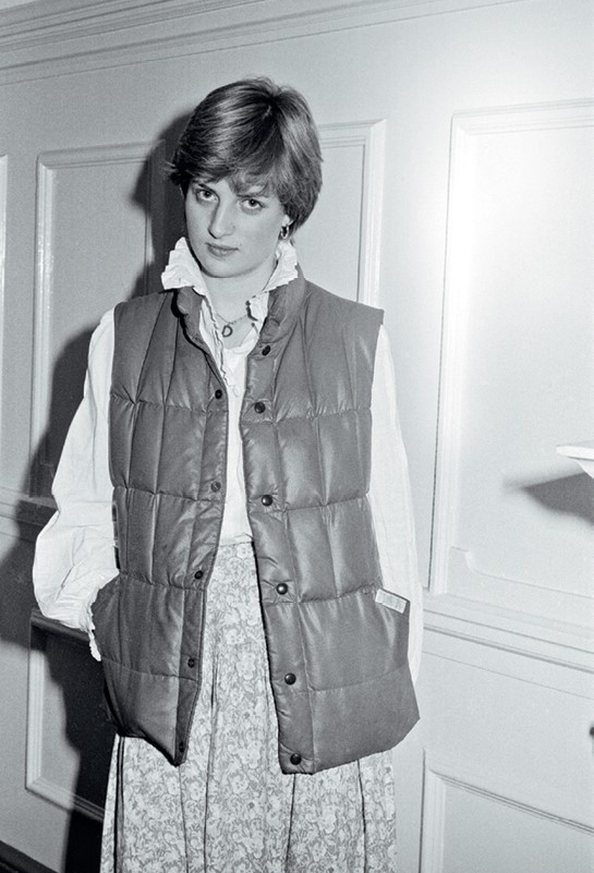 Леди Диана в 1980 году возле своей квартиры в Кенсингтоне. Пуховый жилет деревенской девушки надет поверх блузки с полустоячим воротником. Юбка в цветочек и неизменная подвеска D на золотой цепочке. Поле того, как будущая герцогиня впервые обратила на себя внимание прессы, она договорилась с фотографами, надеясь, что они хотя бы на некоторое время оставят ее в покое, если она даст им возможность делать снимки.