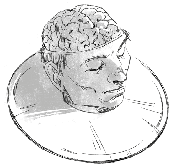 Сперва потрогайте его мозги. (Передается старый гнилой помидор.)