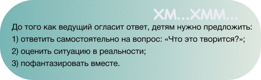Главная идея игры заключается в том, что в заданиях-загадках, небольших стихотворениях детям предлагается дать собственную оценку несуществующим событиям, явлениям, действиям, которые противоречат здравому смыслу. При этом нельзя говорить: «Ты не прав», «Не отгадал» и т.д. Разрешается слегка направлять развитие умозаключений, периодически поощряя самостоятельность выводов.